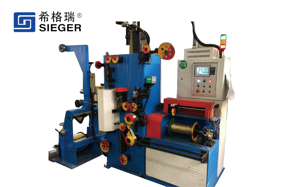 High speed winding machine specially designed for steel cord production, advanced tension control system and broken wire detection device, with residual torsion automatic detection and correction device. The steel cord produced has good surface quality and stable residual torsion value. Maximum production speed 12000rpm.